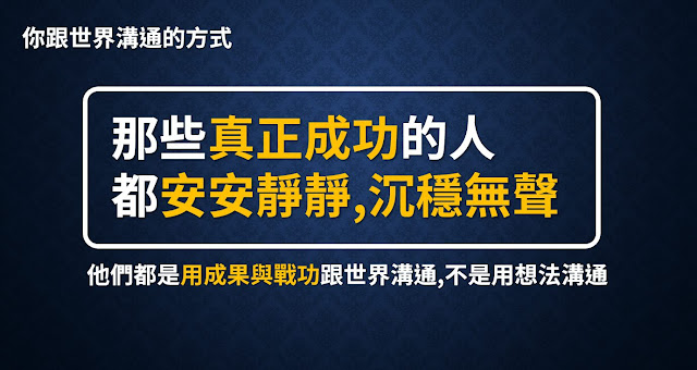 所以當你在拼了命的在一個不佳的環境之下創造了戰功,那恭喜你,你累積到了獨特又有價的經驗,而也因為你的拼命,你就會知道真正成功的人都安安靜靜、沉穩無聲,因為 在成功之前那一條路上你打拼到沒天沒夜,創造了一個看似不可能的戰功。