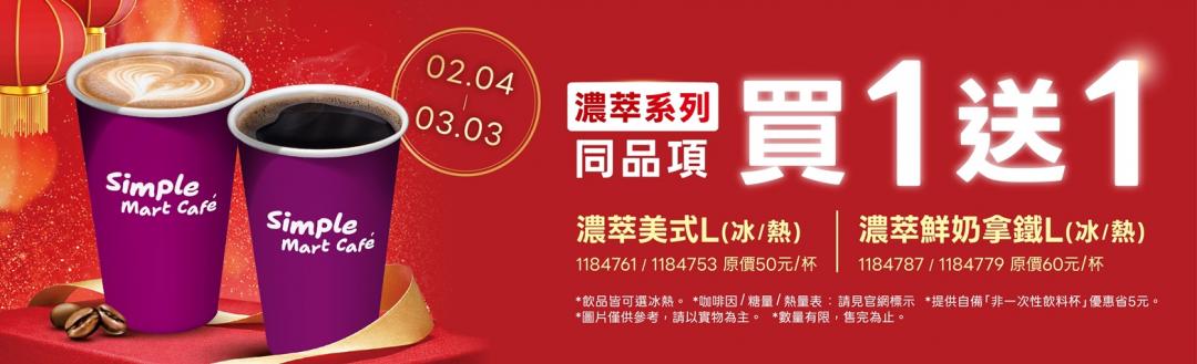 除了每月3日限定的咖啡日優惠,迎接馬年還有優惠加「馬」!2月4日至3月3日止,濃萃系列(濃萃美式L/濃萃鮮奶拿鐵L)享有同品項買一送一。