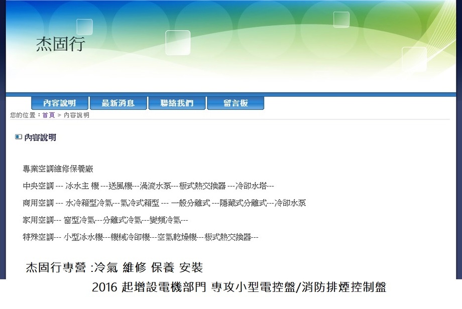 1. 空調/水機電工程 - 本公司主要從事空調/水機電工程服務,2016年增設電機部門.專功小型消防排煙控制盤提供業戶低成本的進競爭力.與機本空調相關工程與完善的售後服務,我們堅持品質與服務態度,獲廣大客戶的肯定。我們是一群專業、優秀的團隊。