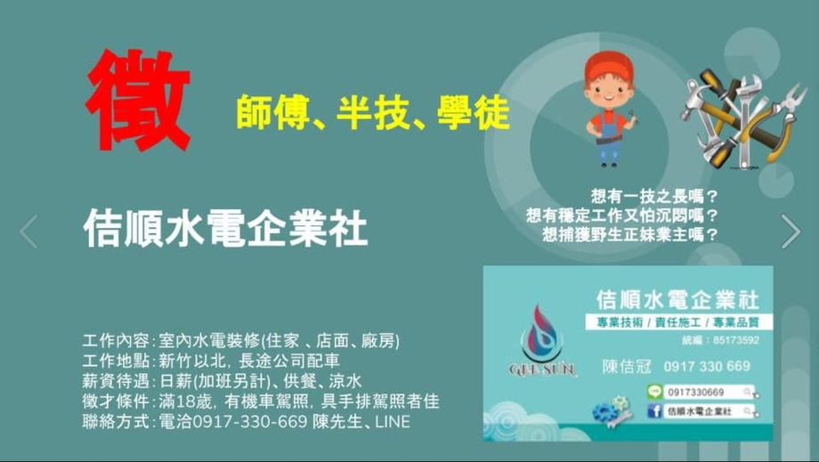 本公司主要從事電力及機電工程服務,提供相關工程與完善的售後服務,我們堅持品質與服務態度,獲廣大客戶的肯定。我們是一群專業、優秀的團隊,重視每一位員工,提供學習及成長的空間以及給予員工隨時的幫助,本公司目前正招募專業人才,歡迎優秀的朋友一起加入我們。