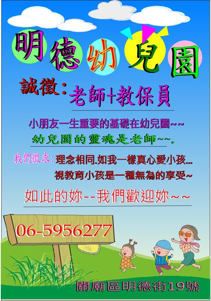 藍天幼兒園位於台中市東關路七段100號,是一所結合人文,藝術的學校也是東勢地區少數實施NP數學,多多龍幼兒體能,獨立繪畫課程的園所.精緻教學情境下,每位幼兒都能得到老師全心的照顧以及個別指導.我們不單單只是經營一個園所,更是經營一個家,一個給孩子溫暖的家. 備註說明 套房教室-孩子倍感安全,家長倍感安心. 手語教學-體驗靜在不言中用雙手表達語言的藝術. 晨操律動-輕快或溫馨的歌曲中,為孩子帶來活力的一天. 木質地板教室-脫鞋才進教室活動,環境衛生加分.踩踏木質地板,孩子觸覺更靈敏.午睡躺下休息,腰椎兼顧更健康.