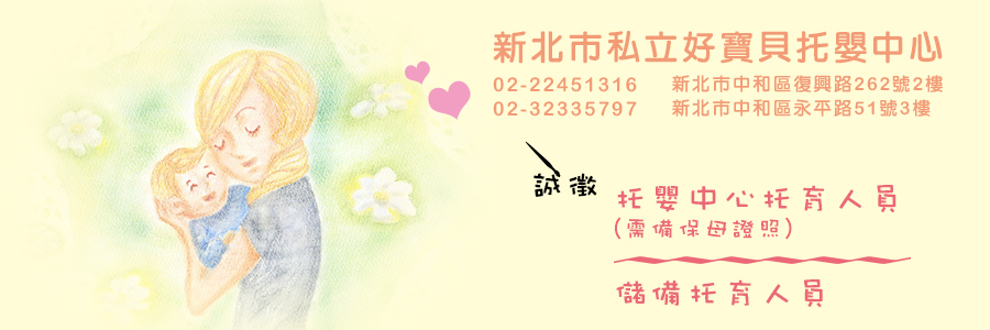 好寶貝托嬰中心是一群熱愛嬰幼兒的小園丁,結合專業人員一同為嬰幼兒健康、成長把關,陪著他們學習、探索,以『了解愛』、『接受愛』、『付出愛』為我們的永遠精神,也因只有愛才會快樂,有快樂才有積極的能量,有了能量便有潛力發揮創造力。