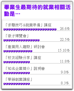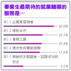 畢業生期待校方的就輔功能,實習機會第一名,還想做測驗自己的就業力+職能分析