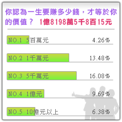 41%認為自己所得低於價值,一生應賺1億8千萬元才符合價值