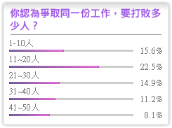 應屆畢業生預估,平均5個月內就能找到第一份工作,反觀已在職場的上班族卻認為,應屆畢業生至少要7個月才找得到工作。而且要順利找到工作,必須打敗75個競爭對手,對照去年數據顯示只要打敗31人,求職難度明顯提升。