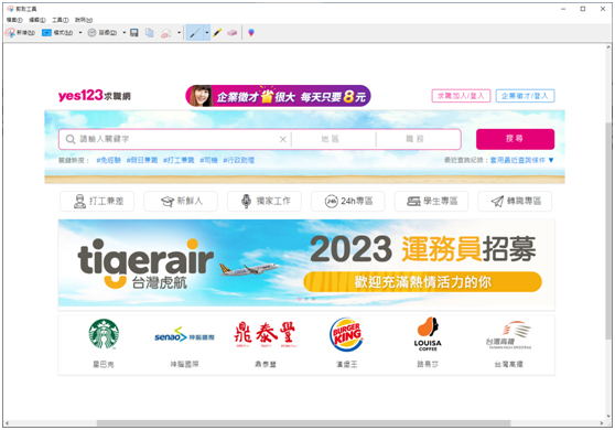 Windows7以上版本附屬應用程式都會有的截圖工具,從左下開始→Windows附屬應用程式裡面就能找到,開啟後會有個小視窗出現,點選視窗中的新增按鈕就會進入截圖模式,圈選你要擷取的範圍即可,除了點選上方功能列的儲存以外也能直接Ctrl+V貼上喔,此外也有變換截圖模式及設定延遲時間截圖的功能可以切換運用。