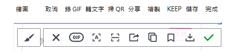 只要在選完區塊後跳出來的功能列表中點選G I F圖案就可以錄製了,也有截圖掃圖片及掃QRcode的功能可以使用喔。
